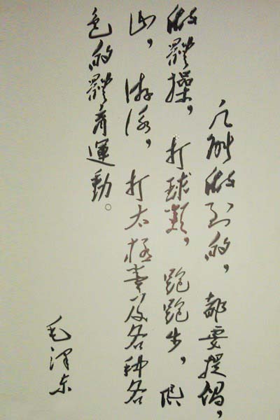 凡能做到的,都要提倡。做体操,打球类,跑跑步,爬山,游泳、打太极拳及各种各色的体育运动。