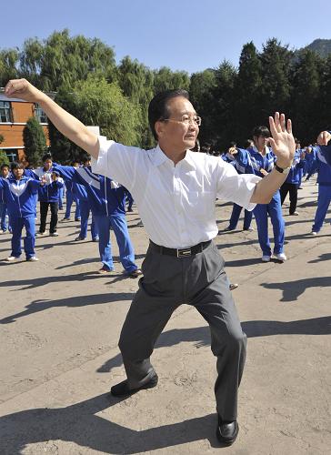 2010年5月31日,中国国务院总理温家宝在东京代代木公园晨练时与日本市民一起打太极拳。这是温家宝总理时隔三年之后第二次在日本练习中国太极拳,钟爱程度可见一斑。